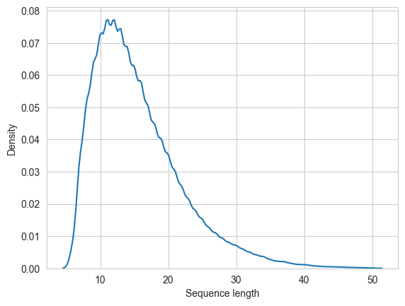 sns.kdeplot(spectrum_df["sequence"].str.len())